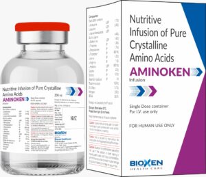 Aminoken Infusion is a nutritive infusion of pure crystalline amino acids designed to provide essential nutrition support in critical care and pregnancy. It helps maintain the body’s protein balance, supports fetal growth, enhances maternal and perinatal outcomes, and assists in tissue repair and recovery.