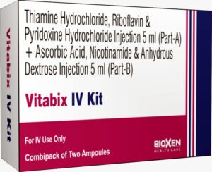 VITABIX IV KIT is a comprehensive intravenous multivitamin formulation designed to combat nutritional deficiencies, support nerve health, and improve overall metabolic function. It is particularly useful in critical care, chronic illness, alcohol-related conditions, and recovery scenarios requiring rapid replenishment of essential vitamins.